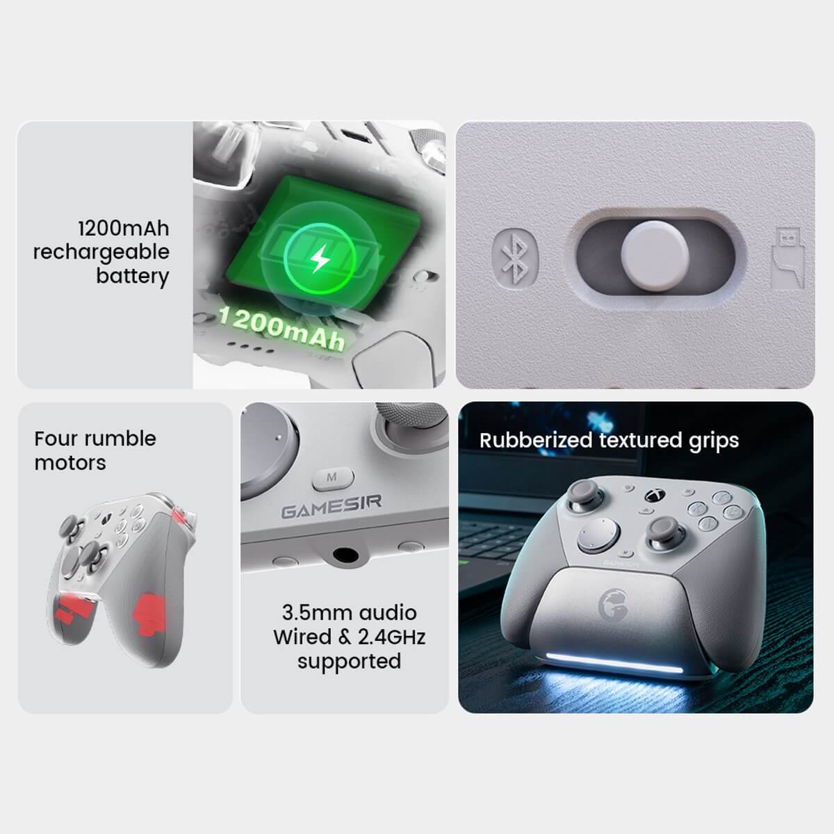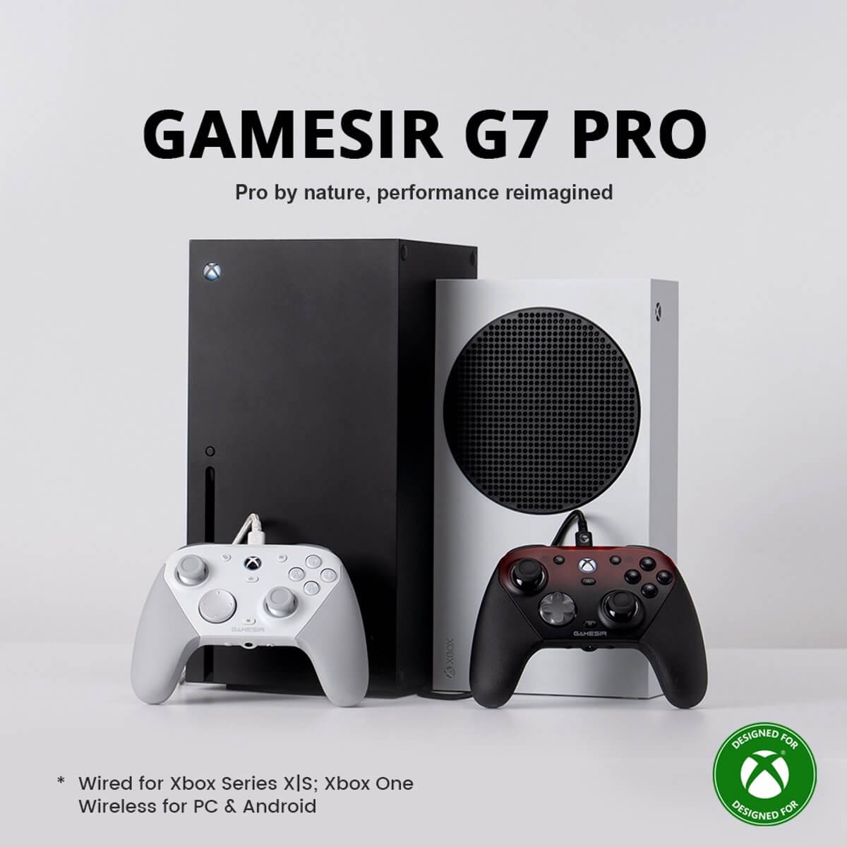 De GameSir G7 Pro is de ultieme Xbox-controller met Mag-Res™ TMR-sticks, Hall Effect triggers met klikbare triggerstops, 1000 Hz polling rate en tri-mode connectiviteit. Geschikt voor Xbox Series X|S, Xbox One, PC en Android. Kleur: Wit.