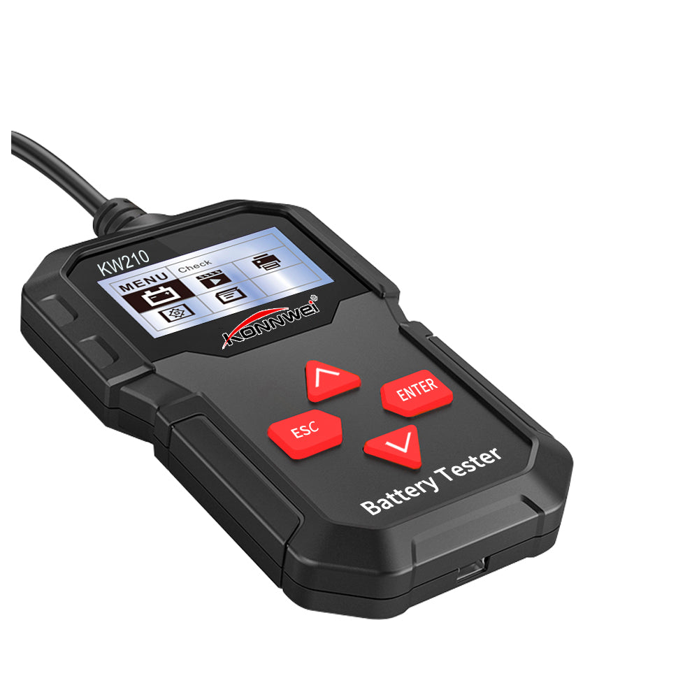 De Konnwei KW210 is een 12V accutester met kleurendisplay voor het meten van batterijconditie, laadsysteem en startsysteem. Compatibel met loodzuur, gel, AGM en EFB batterijen. Inclusief Nederlandstalige interface.