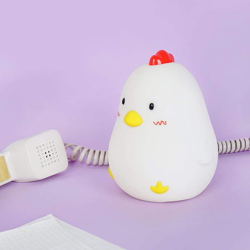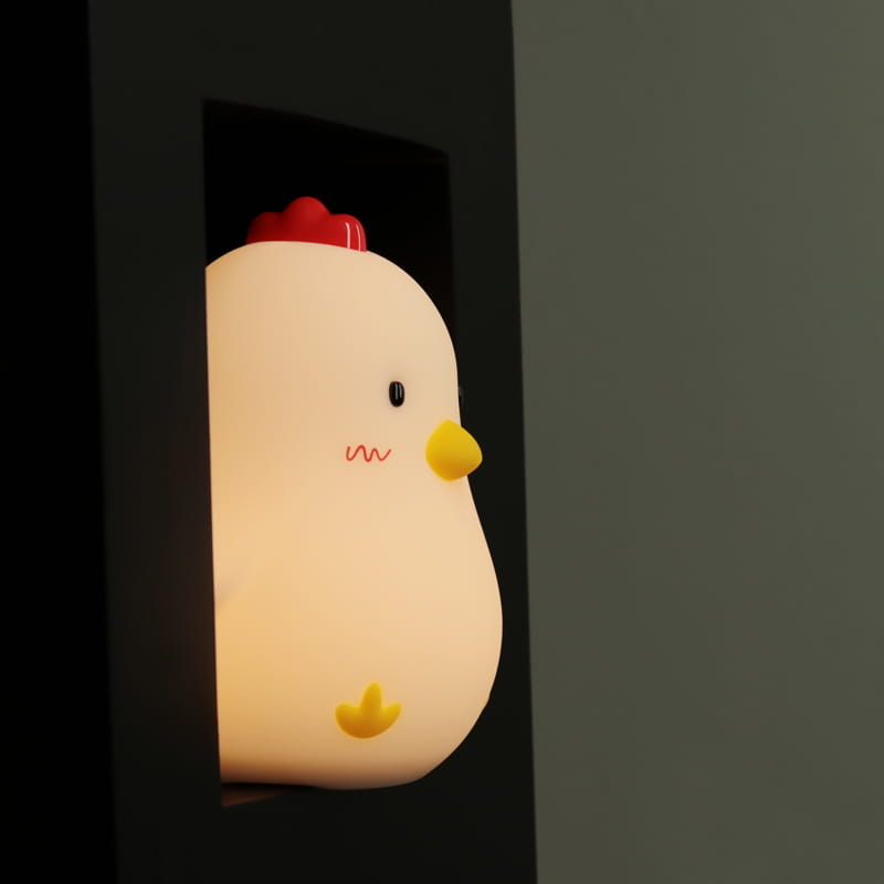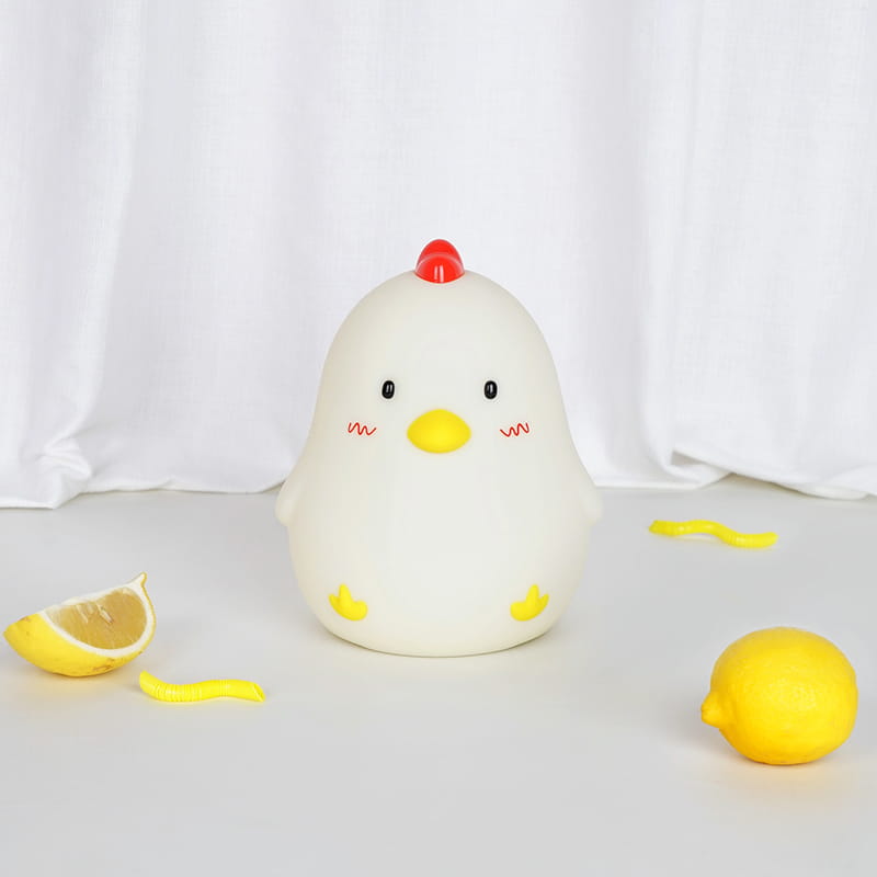 Slaaplampje in de vorm van een kip en nachtlampje.