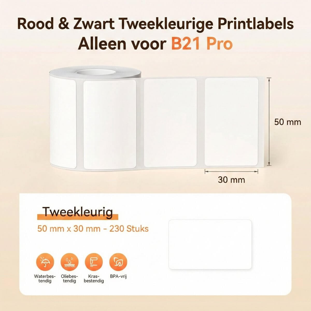 Niimbot B21 Pro 300dpi labelprinterrol 50×30mm — wit. Voor maximale printscherpte met de B21 Pro.