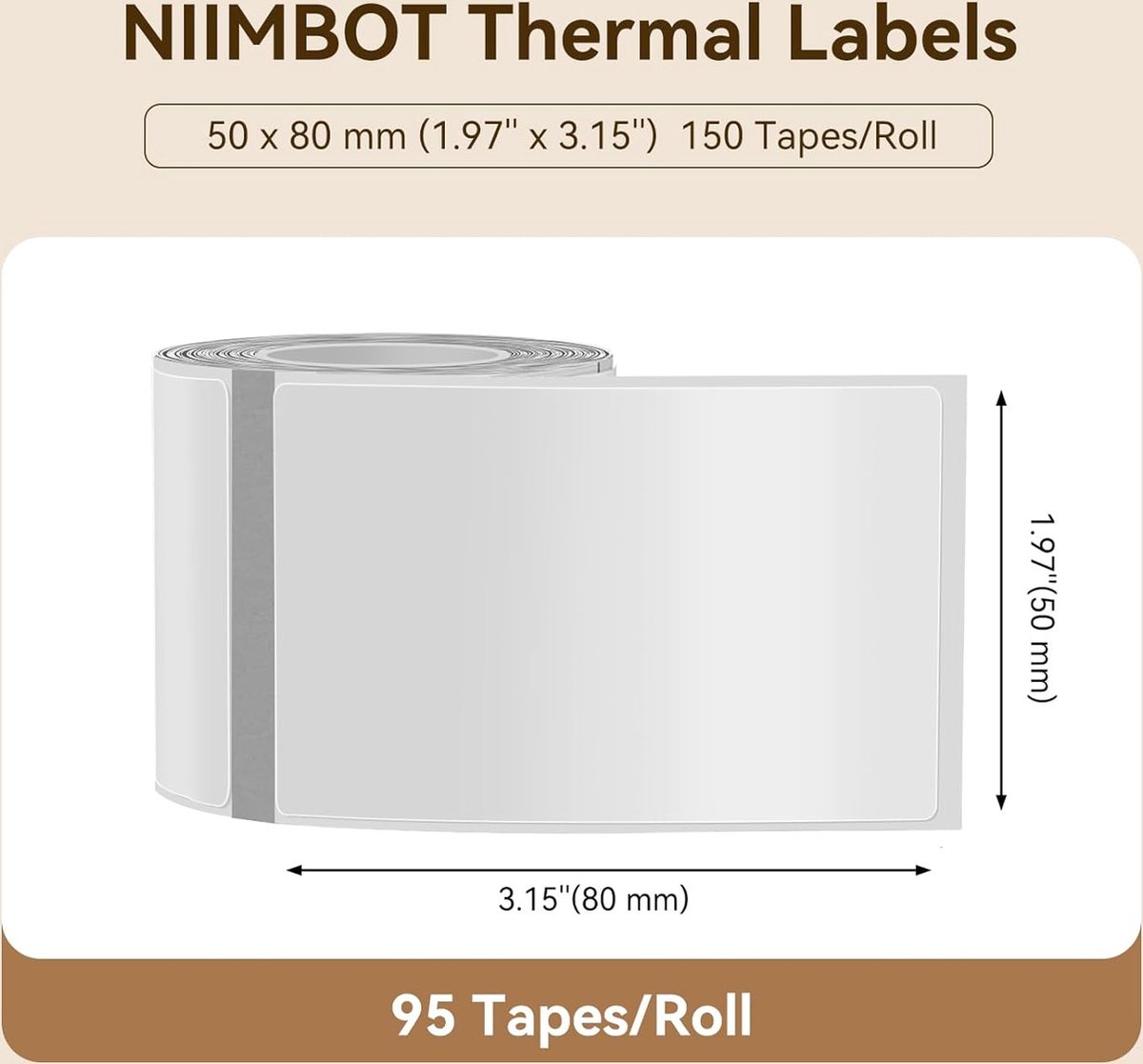 Niimbot Labels – Etiketten voor K3/B1/B21S(Pro)/B3S(Pro) – 50×80 mm – 95 vellen – Wit