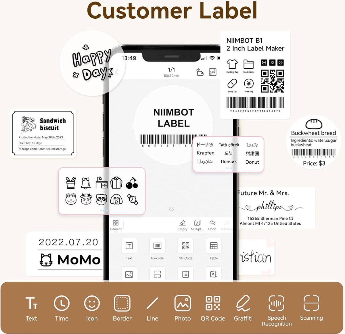 Niimbot Labels voor K3/B1/B21/B3S – 50×80 mm – 95 vellen – Wit