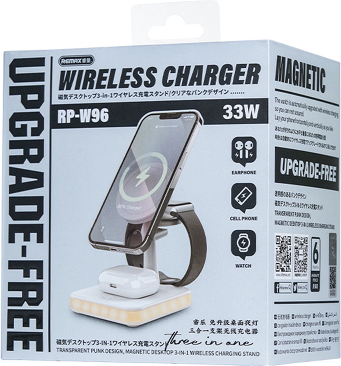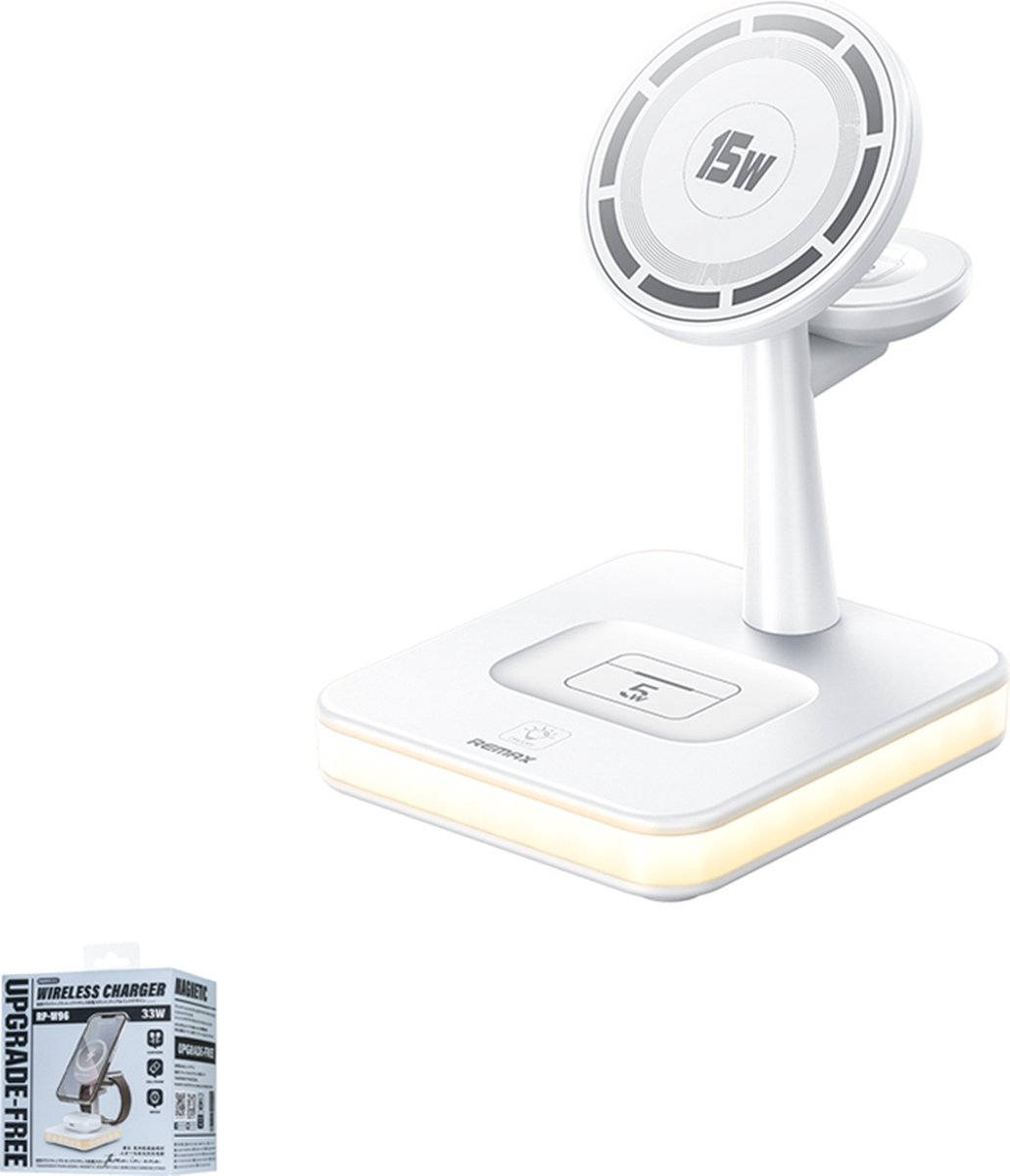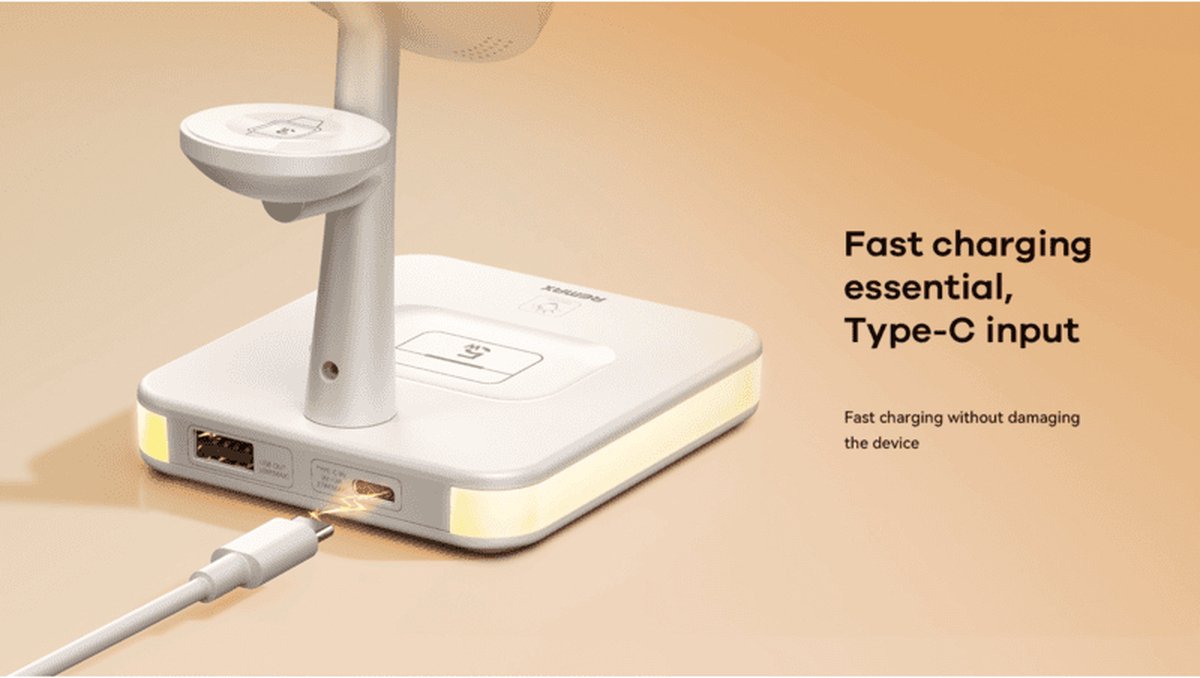 Geniet van de snelheid van snel draadloos opladen van 15 W, op maat gemaakt voor uw Apple iPhone, waardoor lange wachttijden worden geëlimineerd. Deze multifunctionele oplader ondersteunt op harmonieuze wijze uw hele Apple-ecosysteem en levert 2 W opladen voor uw Apple Watch en 3 W opladen voor uw Apple AirPods. Met een USB-C-voedingsingang en een extra USB-uitgang is dit de alles-in-één oplaadoplossing waar je op hebt gewacht.