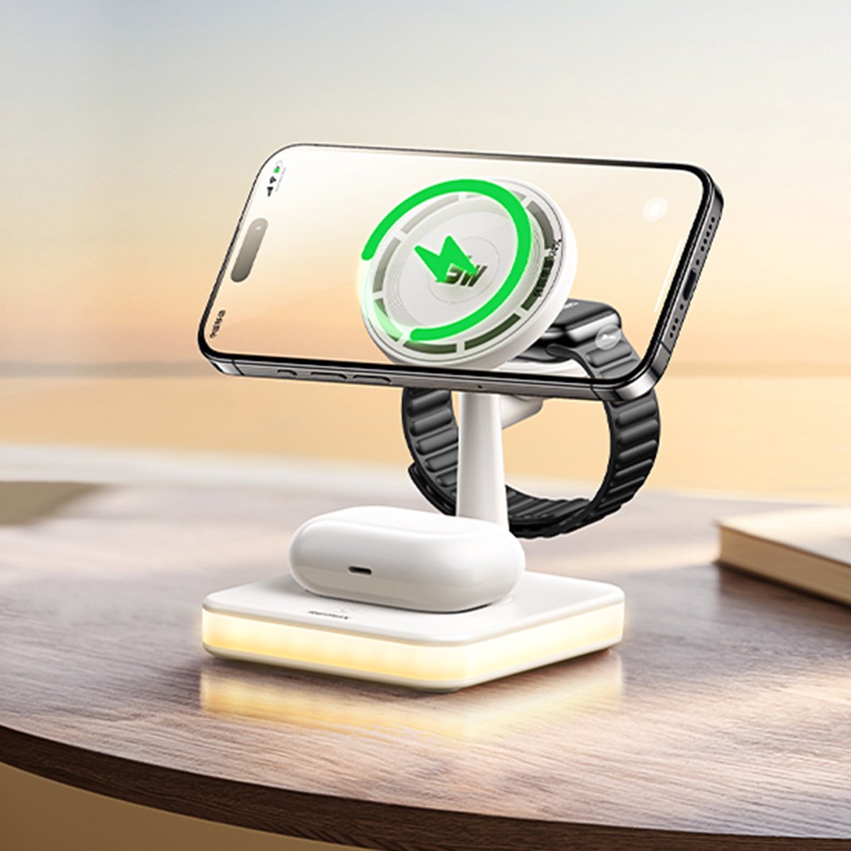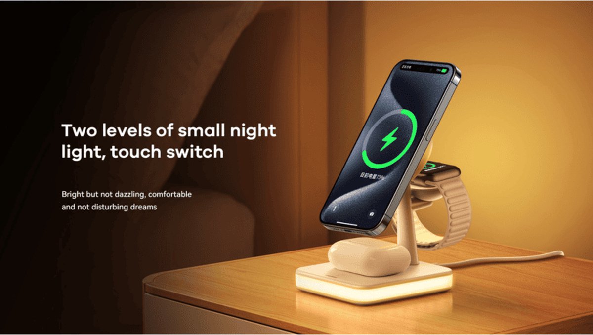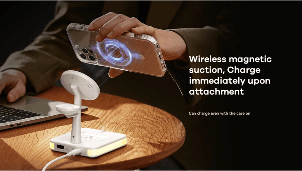Zeg vaarwel tegen de kabelchaos en verwelkom de toekomst van opladen met onze voortreffelijke 4-in-1 magnetische snelle draadloze oplader. Verbeter nu uw oplaadervaring.