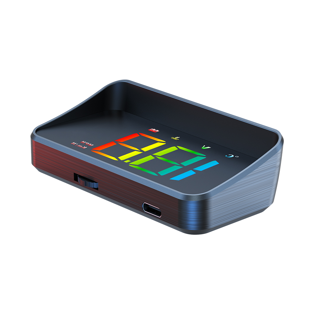 Strak en compact ontwerp: WiiYii M4 HUD heeft een minimalistische en ruimtebesparende constructie met een antisliptextuur, wat de esthetiek van het interieur van uw auto verbetert en tegelijkertijd een veilige plaatsing op het dashboard garandeert. Deze HUD heeft een kleueren display en UBS-C poort.